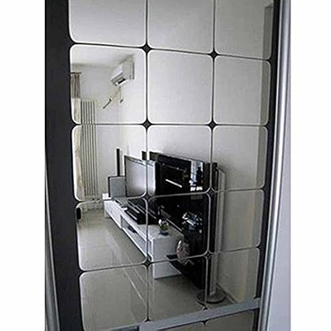 Vigorfun 12 Stuck Spiegelfliesen Selbstklebend Abgerundete Ecke Spiegel Aufkleber Wandspiegel Zum Wanddekoration Silber 15 X 15 Cm