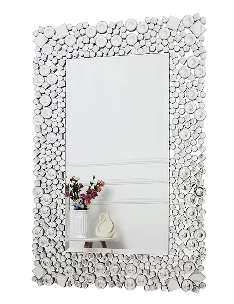 Richtop Wandspiegel Gross Mit Glitzer Jeweled Kristall Schwarz Holz Backing Glamorous Rechteck Silber Schminkspiegel Wandmontage Fur Wohnzimmer Flur