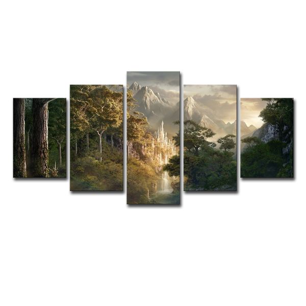 Grosshandel Leinwandbilder Wandbilder Rahmen 5 Stucke Schloss In Den Bergen Bilder Herr Der Ringe Poster Wohnzimmer Dekor Von Xmqh2017 18 49 Auf