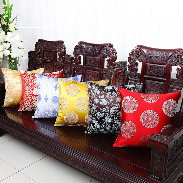 Grosshandel Grosse Blume Retro Chinesische Seide Kissenbezug Weihnachten Sofa Stuhl Auto Ethnische Zuruck Kissen Wohnkultur Satin Lumbar Kissenbezuge