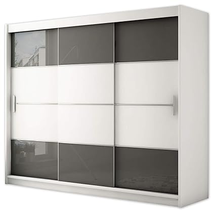 Schwebeturenschrank Kleiderschrank Dekor Weiss Grau Breite 301 Cm