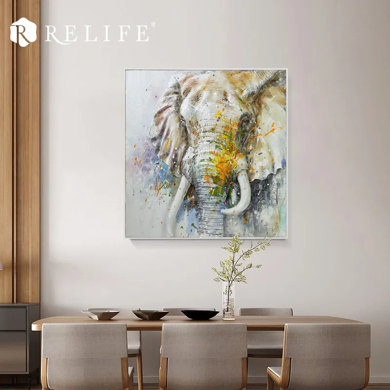 Gerahmte Acryl Handgemalte Elefanten Olgemalde Auf Holz