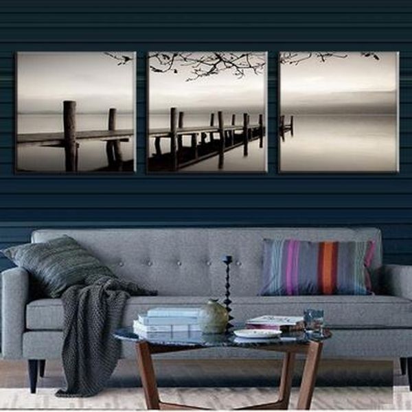 Grosshandel Neue 3 Teile Satz Moderne Wandmalereien Grau Fahre Und Fluss Leinwand Wandbilder Fur Wohnzimmer Kunst Auf Leinwand Von Zhupengtao 10 06
