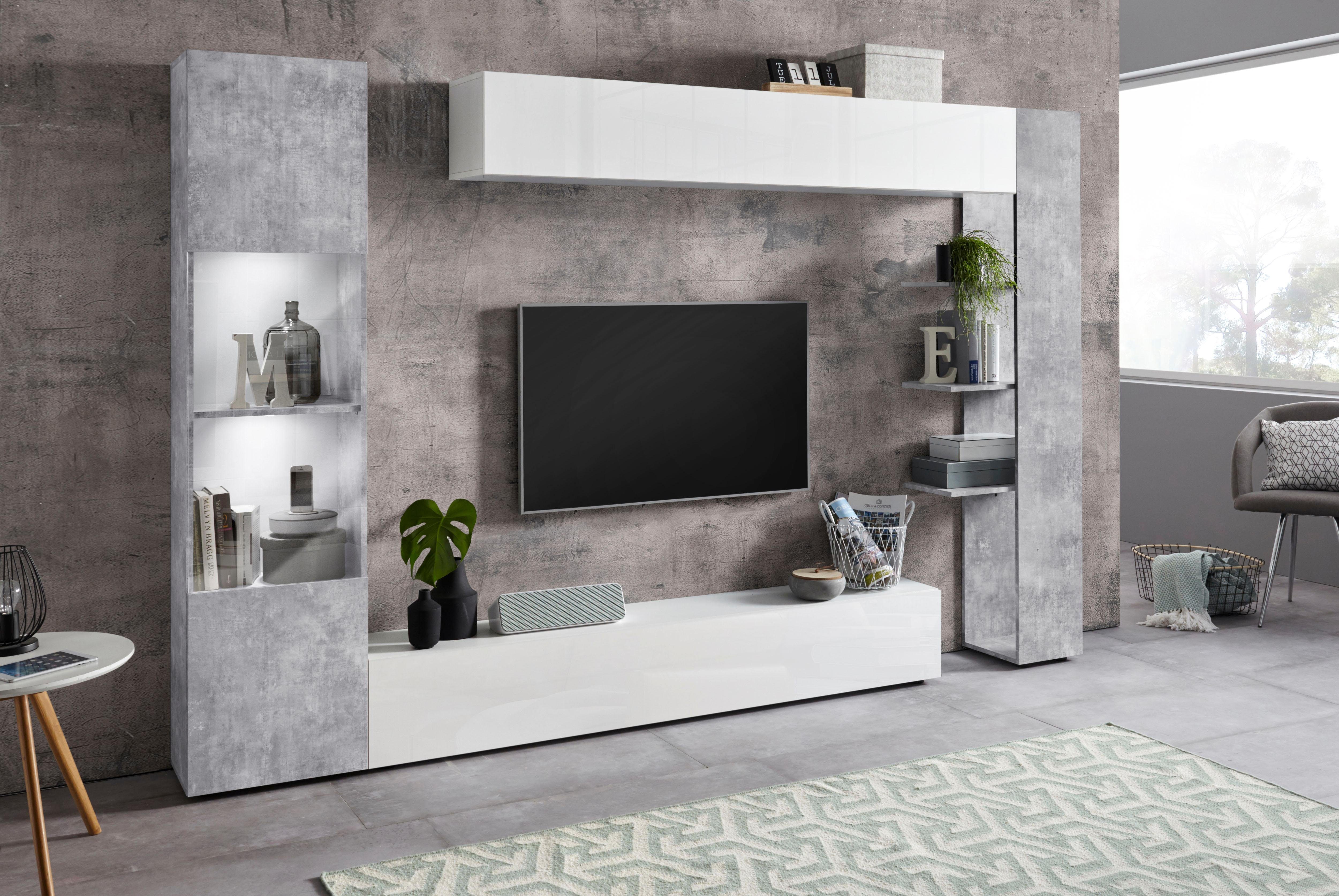 Wohnwand Inkl Led Beleuchtung Matt Weiss Mit Althloz Faro 36