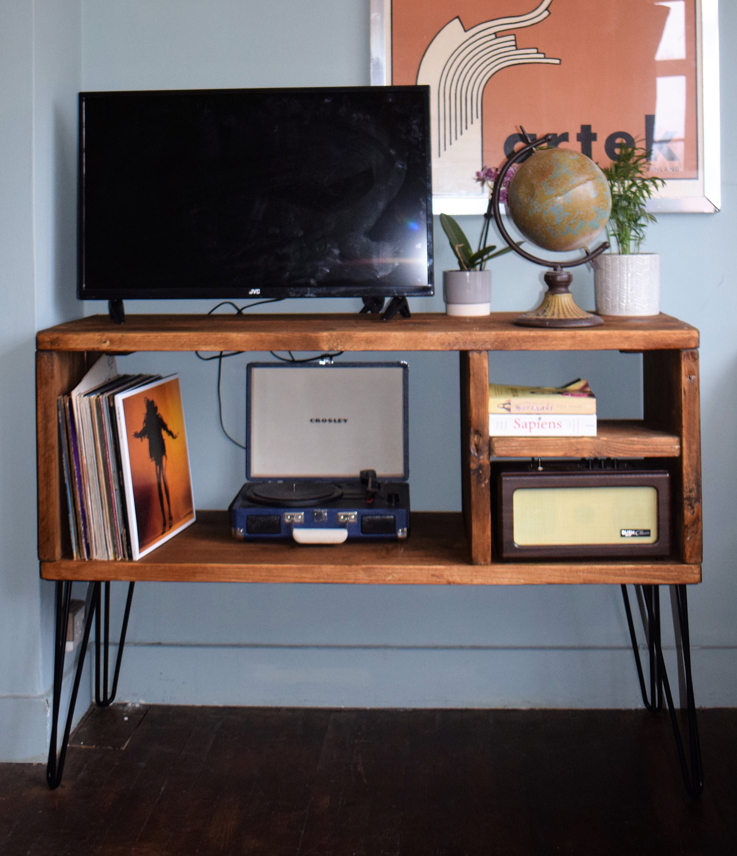 Reclaimed Tv Stand Industrial Custom Hairpin Legs Rustic Scaffold Board Coffee Table Vintage Bespoke Hand Made In Uk