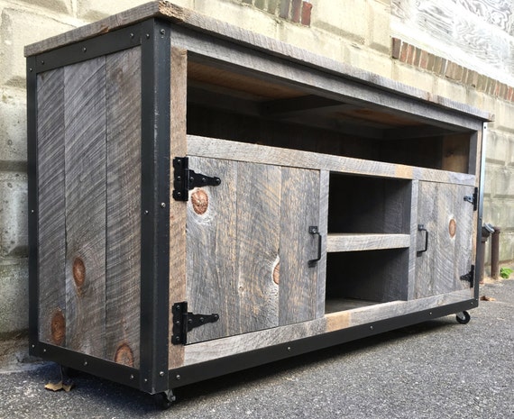 Hand Crafted Rustic Industrial Barn Board Media Stand Tv