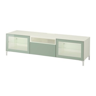Tv Storage Combination Glass Doors Besta White Notviken Grey Green Clear Glass