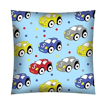 Kinder Baby Kissenbezug 40 X 40 Cm 100 Baumwolle Mit Reissverschluss Autos Blau